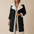 Denna långa vinterjacka har en mörk utsida och en ljus kontrasterande insida med bred slagkrage. Modellen är avsedd för kallare dagar och passar både till vardagsplagg och mer uppklädda plagg. Den raka silhuetten ger ett klassiskt uttryck som fungerar i många vardagssituationer.
