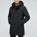 Denna vinter parka jacka har en längre modell med fast huva och vadderad insida. Ytterplagget är avsett för kallare dagar och vardagligt utomhusbruk. Den mörka, neutrala färgen gör den enkel att kombinera med olika kläder.